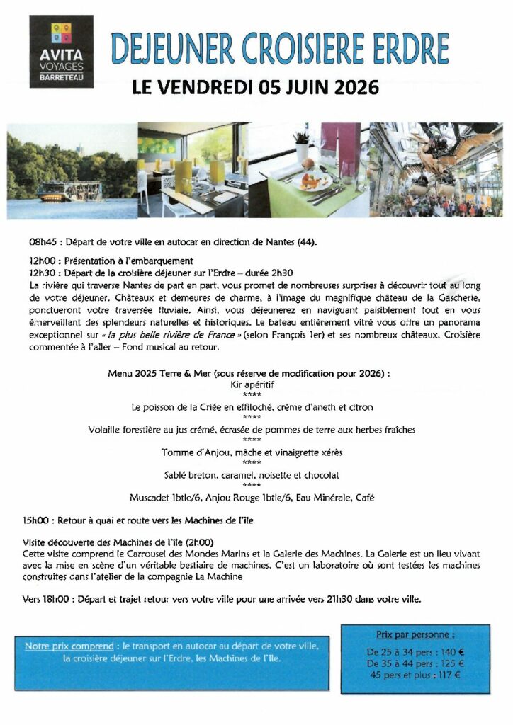 Des excursions d’une journée sont programmées. Elles concernent soit la visite d’un site soit la participation à un spectacle.